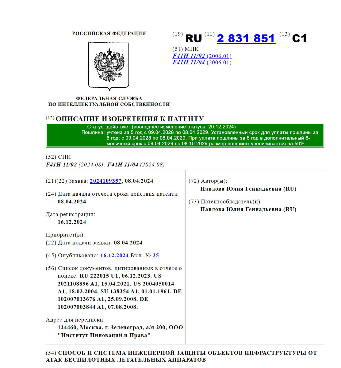 Единственная система физической защиты целого завода или нефтебазы - Стальной купол, получила долгожданный патент Роспатента. Путь патентования продлился с 08 апреля 2024 года, именно с этого момента и действуют авторские права. Именно на нашем стенде Министр МЧС РФ провел времени больше, чем на любом другом экспонате выставки. У нас самый богатый опыт практической работы и боевых испытаний. Анонс: 15 февраля 2025 года состоятся боевые испытания по нескольким типам систем физической защиты от дронов на полигоне Росгвардии ВНГ РФ в Московской области. Будут испытаны все три системы защиты: