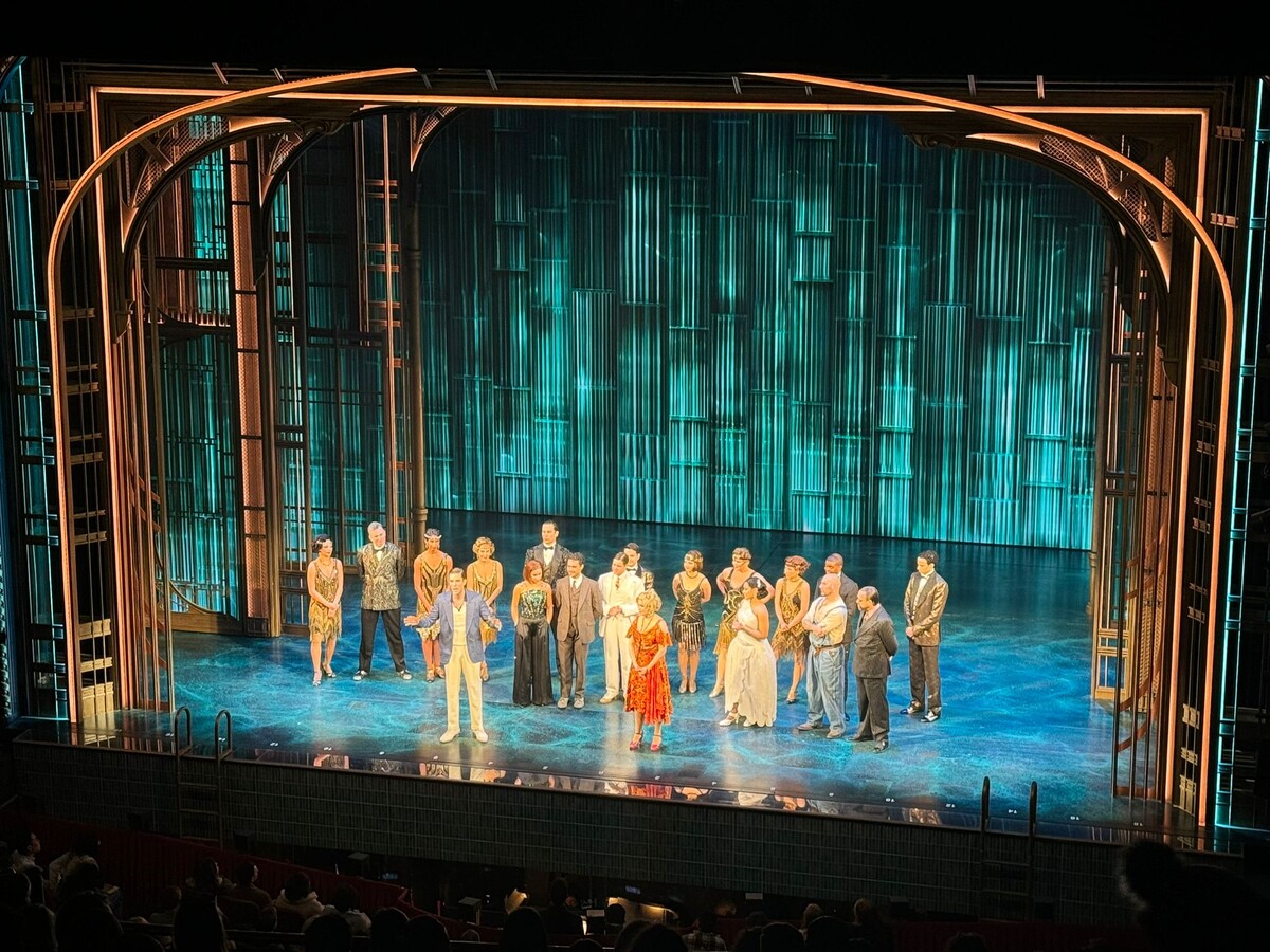 Недавно мне посчастливилось посетить мюзикл «Великий Гэтсби» на Бродвее в Нью-Йорке, который, безусловно, оставил во мне глубокое впечатление. Эта постановка, основанная на знаменитом романе Фрэнсиса Скотта Фицджеральда, была не просто адаптацией, а настоящим погружением в мир роскоши и фантазий 1920-х годов. Однако стоит отметить, что визуальный ряд и стилистика мюзикла были сильно вдохновлены экранизацией 2013 года, что сделало его особенно актуальным и знакомым для современного зрителя. С первых мгновений спектакля я ощутила себя частью бурного времени, когда богатство и блеск конкурировали с внутренними конфликтами и трагедиями. Мюзикл открывается яркими и запоминающимися образами, которые, как и в фильме, наполнены символикой и атмосферой. Билборд с нарисованными глазами в оправе очков, который стал знаковым элементом, мгновенно напомнил о визуальном стиле картины База Лурмана. Это создает ощущение единства между двумя формами искусства, и зритель оказывается в плену не только муз