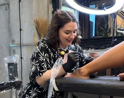 Готовый эскиз собеседница, как правило, предоставляет клиенту за день-два до сеанса, чтобы в день Х не было никаких сюрпризов. Исключением из правил становятся только постоянники, тату на теле которых исчисляются десятками. Они совсем не против того, чтобы увидеть картинку непосредственно на встрече с мастером.