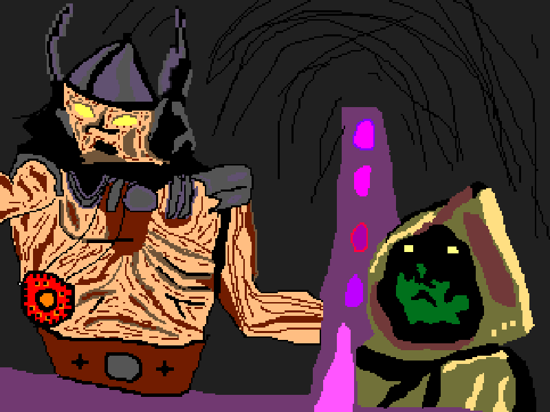 Пиксель арт на сегодня по мотивам видеоигры The Dark Heart of Uukrul для компьютерной системы Ibm Pc MsDos. Это, опять же, ролевая игра. Про 80ые. Про подземелья. И, конечно, драконы будут. Классическая ролевая игра той эпохи. Многое для воображения. И фэнтези тематика приключений. Прокачка персонажей. Лабиринты. Все впереди! То, что надо геймеру! А, это мой рисунок по мотивам The Dark Heart of Uukrul (MsD0s). Крорник волшебник и воитель Джошлинд, уже, проникли в гробницу королей. Теперь, у них нету другого пути как дойти до обелиска королей. И за ними уже идут черные всадники Крома. При помощи магии и меча он собрал огромное войско и контролируют целый континент. Храм Змея, уже, позади. Это был ложный след. Сначала путешественники думали, что обелиск находится там, но это была ловушка. И, теперь, они днем и ночью уходят от черных всадников Крома. И, вот они у своей цели. Гробница королей. Осталось найти обелиск. Они идут в полной темноте. Чтобы никто их здесь не увидел. Это очень затр