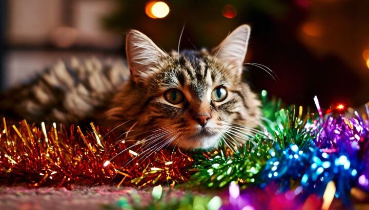 Дождик и мишура очень опасны для здоровья кошек и собак