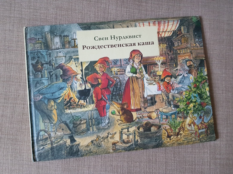 Тоже ностальгическое - читали с дочкой в её семь лет. *** Показала дочке обложку, спрятав рукой имя автора: "Угадаешь, кто автор?" Угадала) ещё бы не угадать, ведь такие персонажи - фирменный стиль Нурдквиста. "А мукли меньше гномов?"... думаю, они бывают разного размера. Видимо, есть и муклы-гномики. "Ой, а это Финдус?!" Очень может быть. Или его брат. Или сын) В Швеции есть традиция - угощать гномов рождественской кашей. И непременно с хорошим куском масла! Но нынешние люди такие... забывают традиции. А это ой как не хорошо! Гном ведь может обидеться! Да он непременно обидится! А разве можно обижать гномов, которые следят за порядком в доме? В рождественский вечер семейство гномов расположилось на шкафу гостиной, как в ложе театра, и наблюдает за людьми. А это ужасно забавное зрелище. Кстати, о скандинавской традиции угощать гномов кашей на Рождество