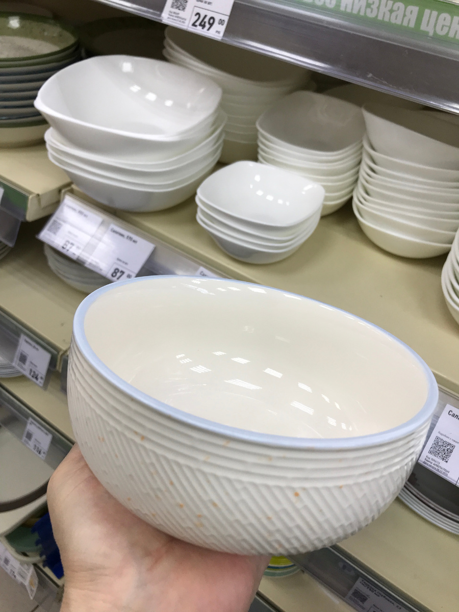 Желаю вам счастья, добра и вдохновения! Выполнена из фарфора. Цена 149 руб. Объем: 940мл Подходит как для повседневной сервировки стола, так и для праздничной. Такая тарелка будет актуальна всегда. Объем: 1.25 Состав: фарфор Такая тарелка станет украшением стола. Подойдет для подачи закусок или основных блюд. Ну на самом деле, если нужна белая столовая посуда, то выбор есть. Представлены тарелки в различных формах. Они отличаются глубиной и диаметром. Цена 149 руб Состав: опаловое стекло Цена 149 руб Цена 83 руб Состав: опаловое стекло. Отлично подойдет для подачи вторых блюд Для сервировки стола я бы выбрала и столовые приборы. Все вместе смотрелось бы интересно Выполнены из нержавеющей стали с "жемчужной" ручкой Цена 87 руб. за единицу Выполнена из боросиликатного стекла, с перламутровым отливом Объем: 320мл Цена 299 руб Также подходит для сервировки десертов и закусок Одна из самых удачных новинок, на мой взгляд. Очень красиво будет смотреться на новогоднем столе. Цена 174.50 р