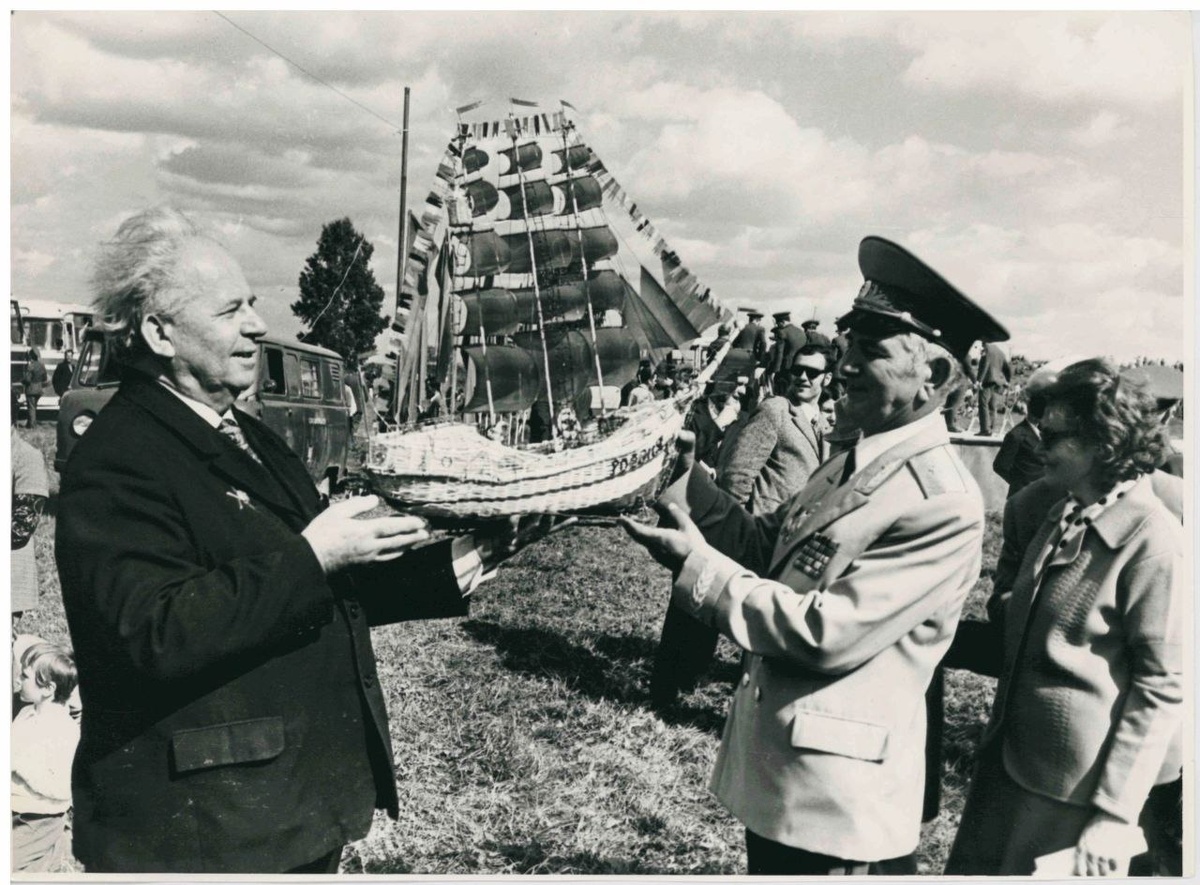 #185историямузеявлицах ЕВГЕНИЙ ГРИГОРЬЕВИЧ СИНИЦЫН Директор Бородинского музея с 24 февраля 1976 г. по 28 августа 1978 г. Родился 27 декабря 1915 года в Рязанской области селе Недостоево в рабочей семье. До войны закончил военное училище. Войну он начал в должности комиссара 2-го дивизиона 13-го полка гвардейских реактивных минометов. «Его дивизион «катюш», находившийся в лесу под Кукарином Можайского района, дал залп по фашистам, когда те предприняли мощную атаку на станцию Бородино, пытаясь выйти в центр Бородинского поля. Осенью 1941 года дивизион был окружен. Снаряды, которые использовала Красная армия, были засекречены, и фашисты старались их захватить. По приказу Сталина эти ракетные установки вместе со снарядами в случае опасности необходимо было взорвать. Командир дивизиона решил организовать ложный прорыв с пустыми ящиками из-под реактивных снарядов. Машины двинулись под вечер. А весь личный состав дивизиона обложил снаряды сеном и поджег. Фашисты, увидев колонну, сняли оцепле