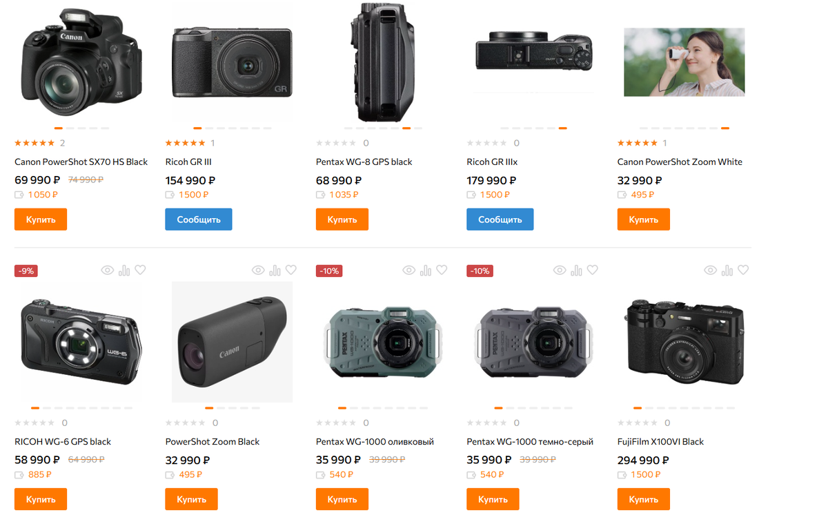 Заметил, что моя старая цифровая "мыльница" стала сдавать как по качеству снимков, так и пятно появляется вверху кадра на ряде фотоснимков. В общем решил начинать приценяться насчет возможности покупки замены. И тут возник шок, как от цен, так и от ограниченного числа предложений. Кстати, сразу купирую вопрос почему мне нужна именно мыльница - мне нужен компактный фотоаппарат с хорошим зумом, который помещается в барсетку или карман брюк. Ни одна зеркалка в барсетку или карман брюк не влезет. Смартфоны иные снимают неплохо, но неудобно при большом количестве снимков им пользоваться. Но смысл материала не в этом. Последний фотоаппарат Канон с оптическим зумом в 25 я приобретал в году 2021-м за примерно 16000 рублей, ранее тысяч за 14 покупал схожий по параметрам Сони в 2016 году. И отметил бы, что в 2016 году цена в 14000 рублей шокировала, до крымских событий они стоили раза в два дешевле. Теперь вот очередной шок. Есть несколько позиций за менее чем 20000, но у них слабый оптический