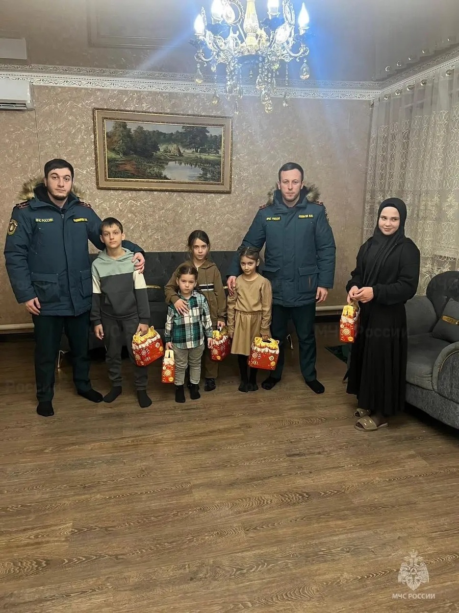Детей погибших участников СВО с подарками навестили сотрудники МЧС по Ингушетии