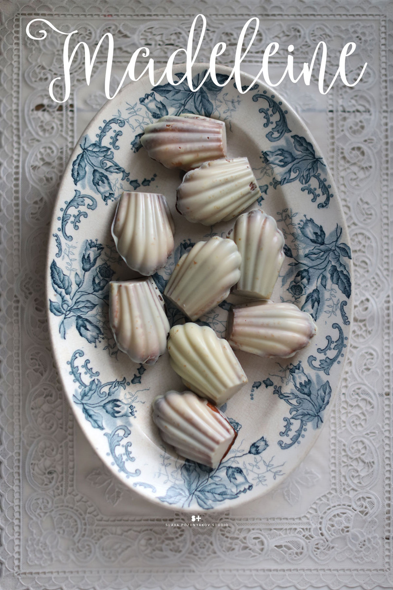 Искусство без границ. Пирожное Мадлен в белом шоколаде.
