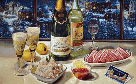"Ну вот, самая ответственная часть праздника позади,- продолжает Н. Мовсесян.- Можно расслабиться и приступить к поеданию вкусностей. Музыка для танцев пока не очень подходит: в советские времена начало "Голубого огонька" - это в основном чествование известных людей: космонавтов и прочих уважаемых граждан. В крайнем случае – народные песни. Леонтьева, Ротару, Пугачеву и прочих "несерьезных исполнителей" еще надо было дождаться. А вот к утру, после "Голубого огонька" начинались "Мелодии и ритмы зарубежной эстрады". Там выступали ABBA, Воney М, Далида, Джо Дассен, Том Джонс. Их тоже смотрели, но не все, а только те, кто еще был в состоянии. Ну а дальше – веселье, гулянье на улице, поздравления. 1 января – традиционные походы друг к другу в гости - доедать угощения, приготовленные к празднику. Вон их как много осталось - от души ж готовили".