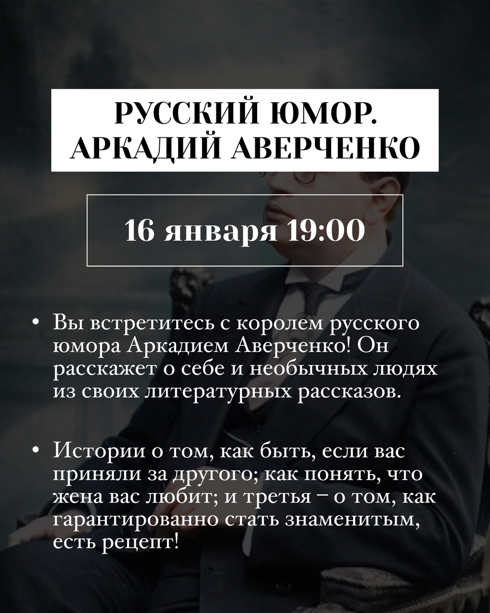 ГАСТРОНОМИЧЕСКИЙ ТЕАТР В КРОМЕШНОЙ ТЕМНОТЕ «РУССКИЙ ЮМОР. АРКАДИЙ АВЕРЧЕНКО»🎭
