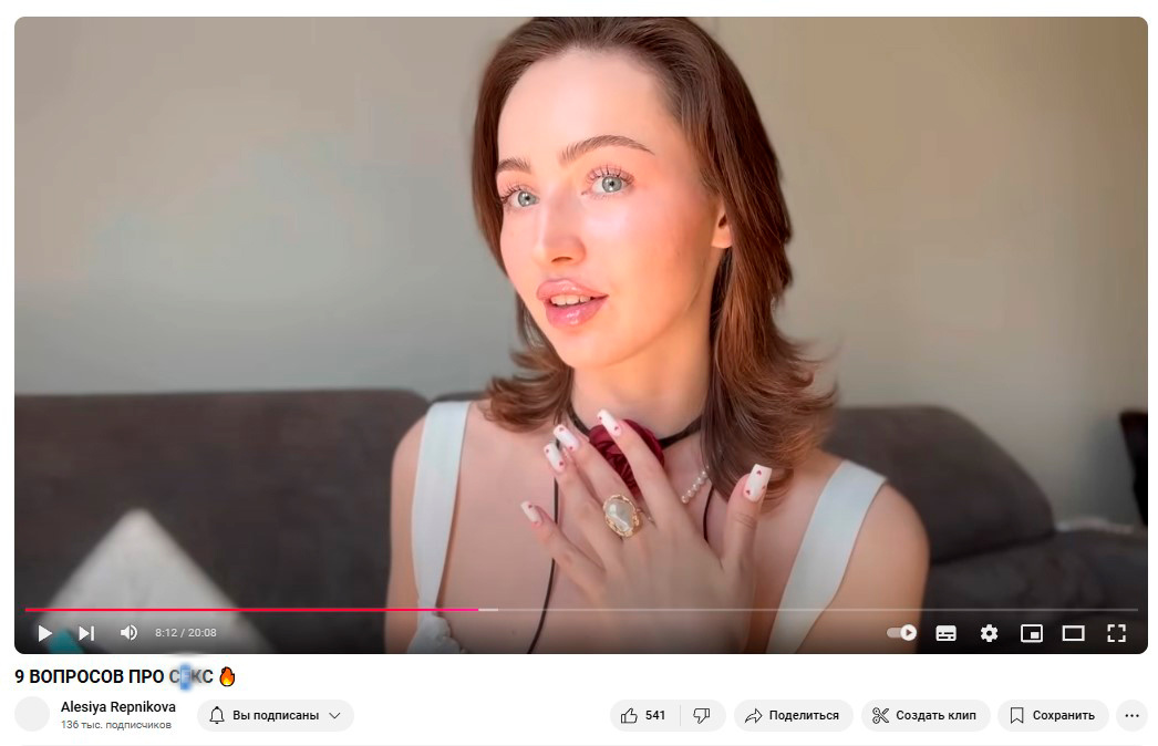 В уходящем 2024 году к съёмкам криминального хоррора в стихах присоединилась блогер с 138 тысячами подписчиков на Ютубе и звезда Рунета Алеся Репникова. Количество фолловеров указано на момент декабря 2024 года. Алеся ведёт блог на взрослые темы. Но делает это с завидной лёгкостью и непринуждённостью. Чем и привлекает внимание своих подписчиков.