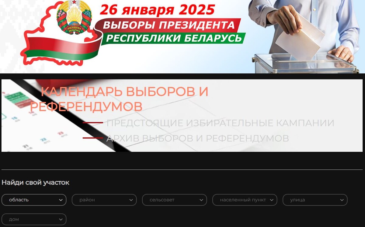 Указав необходимые данные, любой избиратель может узнать, где находится его участок для голосования, чтобы принять участие в важном для страны событии – выборах Президента Республики Беларусь.