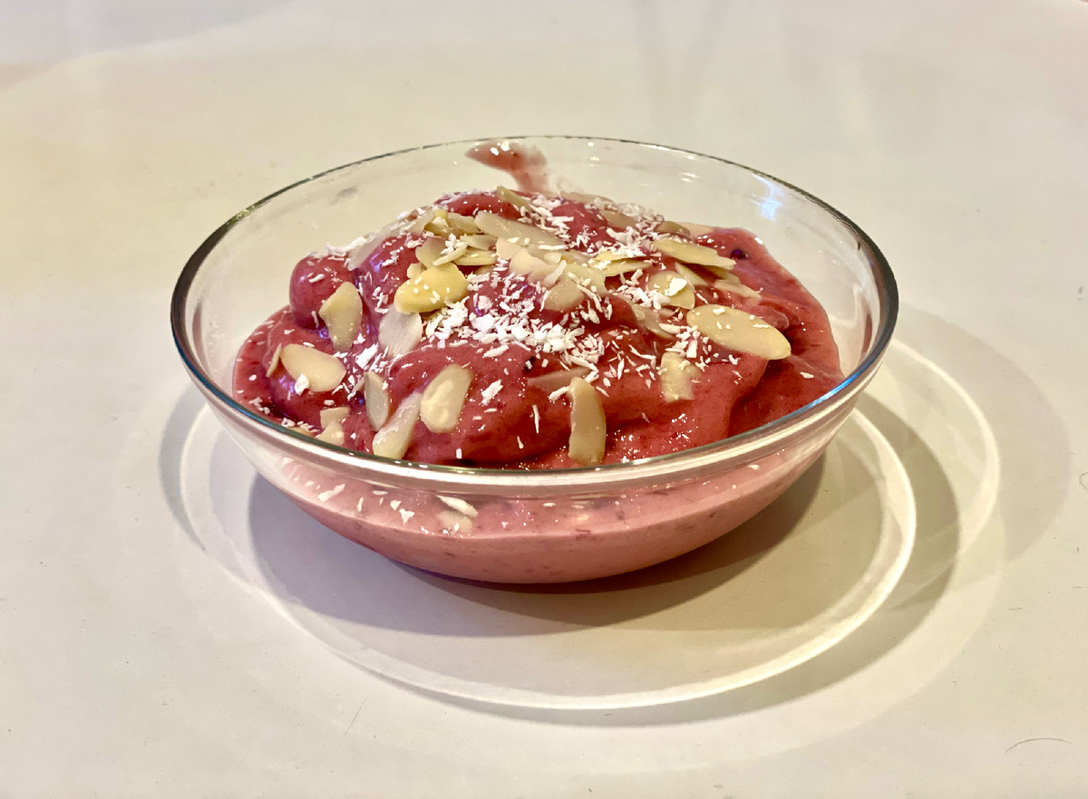 Делюсь рецептом простого домашнего мороженого из трёх ингредиентов, который прост в приготовлении и занимает по времени не больше 10 минут. Что понадобится: Как приготовить? Легко! Просто все продукты взбить блендером в большой ёмкости. Бананы необходимо заранее нарезать кусочками и оставить отдыхать в морозильной камере на 3-4 часа, а лучше на ночь. Готово! Получившееся мороженое я люблю украшать миндальными лепестками и кокосовой стружкой. Но тут нет предела для фантазий и в ход могут пойти: орехи, свежие фрукты, сиропы, варенье, конфитюр, мед, какао, сгущеное молоко, тёртый шоколад и так далее до бесконечности. Мороженое получается нежное, сливочное и безумно вкусное, а главное без сахара и красителей. Я люблю экспериментировать со вкусами. Мне по душе пришлось сочетание банана и сыра горгонзолы. Но это уже на большого любителя. При взбивании бананов можно добавить 2-3 ст.л. какао, чтобы получить шоколадное мороженое. Всем приятного аппетита!
