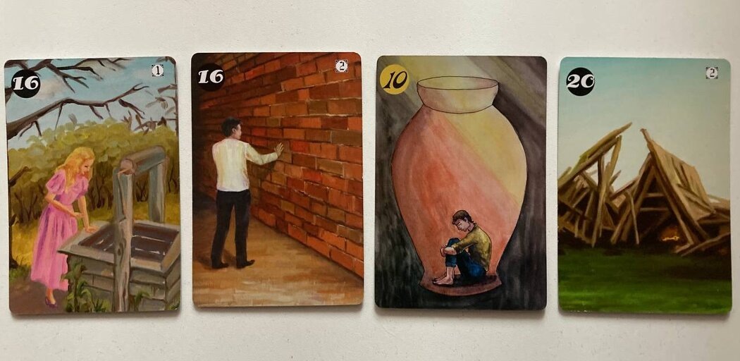 Её запрос к нашей сессии, желание, которое мы решили проработать с помощью метафорических ассоциативных карт, звучит так: "Как научиться идти вперёд не растрачивая все силы, как получать удовольствие от достижений без выгорания?" Карты Мария выбирает "в открытую", то есть берёт откликнувшиеся из разложенных перед ней. 1. Как Вы чувствуете себя сегодня? Нужно взять от 1 до 7 карт. Мария поясняет свой выбор: - Я будто смотрю в сухой, пустой колодец. Ищу чем напиться, но там уже ничего нет. Я часто пытаюсь преодолеть какие-то глухие стены, но они будто непреодолимы, и я так устаю, что хочется побыть вот так, как этот парень в кувшине, просто сама