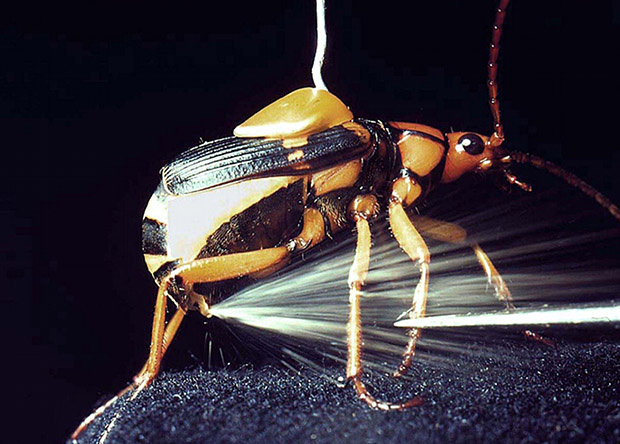 Кого только нет на нашей планете! Животные птицы и даже насекомые способны очень сильно удивить. Например, жук-бомбардир. Одно название говорит само за себя! Да, он стреляет в прямом смысле этого слова, да и не абы чем, а кипятком! Вот действительно, с ним лучше не сталкиваться. За названием "жук-бомбардир" прячется не какой-то один жук, а почти 500 видов насекомых из семейства жужелиц. Конечно, не все они ещё изучены, но учёные уже работают в этом направлении, так как эти насекомые не могут никого оставить равнодушными. С виду жук особо ничем не выделяется. Его размеры составляют примерно 5-15 миллиметров. Тело довольно вытянутое, форма овальная, окрас достаточно темный, в основном красно-коричневый. Но то, что действительно может удивить, дак это способ защита бомбардира от врагов. Насекомое, если чует опасность, брызгает горячей едкой струёй жидкости и газов, которая ко всему прочему ещё и ужасно пахнет. Откуда берется жидкость? Как жук стреляет? Что вообще происходит? Давайте по по
