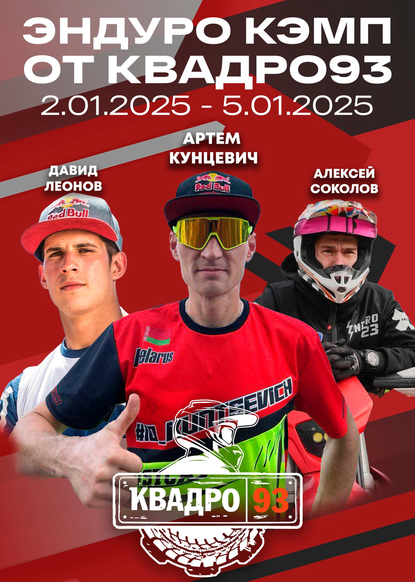 ❗️Уже 2 января стартует крутейшее мероприятие для всех увлеченных эндуристов от команды КВАДРО93. ❗️Вместе со звездными тренерами - Артемом Кунцевичем, Давидом Леоновым и Алексеем Соколовым - участники будут тренироваться, кататься по горному рельефу, получать новые знания и круто проводить время. 👉Подробнее о Кэмпе - здесь. ❗️Предложение ограничено, поспеши! Для покупки слота почти не осталось времени! 👉Звони! Тел.: +7 928 333 26 45.