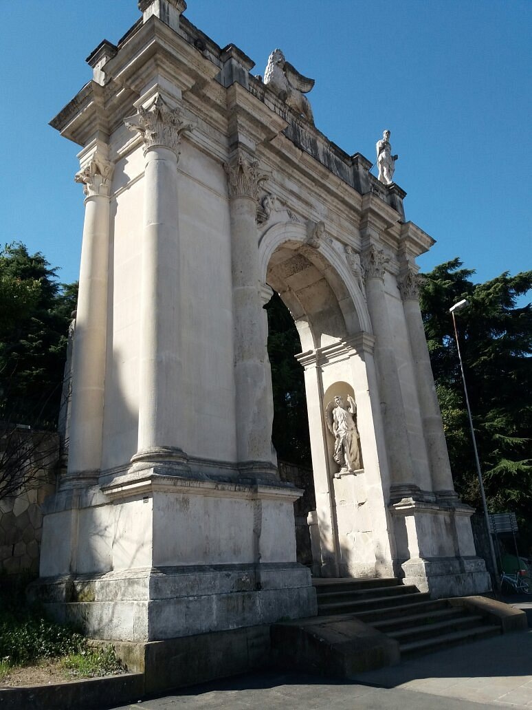 Кстати, похожие шары, как в навершие этих обелисков мы можем обнаружить и на входной Арке в уже упомянутый Олимпийский театр. Вот только не знаю, было ли это уже карго-культом или среди разрушенных катастрофой зданий, тем, кто восстанавливал города в XVI веке, удалось обнаружить подобные устройства допотопной цивилизации еще в исправном виде. Официально считается, что эту Арку строил уже ученик Андреа Паладио - Винченцо Скамоцци. Однако, обратите внимание на то, что античные блоки кладки этой Арки достаточно сильно отличаются от более новодельной, пристроенной к ней стены. Так что, вполне возможно, что и эта Арка тоже уцелела после катастрофы.
