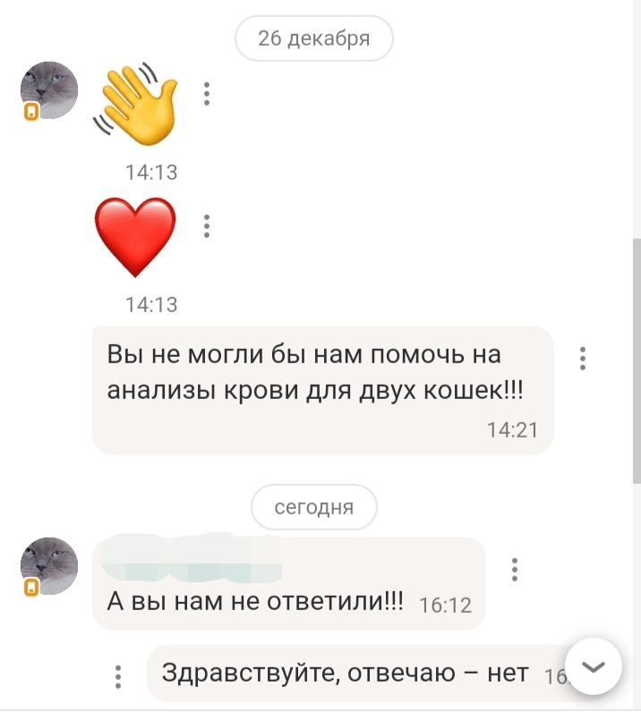 Мне так давно везло общаться только с адекватными людьми, что я уже стала думать, что все такие. Нет, конечно я видела и слышала, какие бывают ситуации в мире, да в том же нашем городе, но ведь есть такое ощущение, когда ты сам лично с негативом не сталкиваешься, то в него не особо и веришь. Возможно, что просто так получалось, а может быть просто не с таким большим количеством народу приходилось сталкиваться. Однако тут недавно мне все же напомнили, что нечего ходить в розовых очках и, вообще, находиться в окружении позитивных и приятных людей. Да-да, надо выползать из зоны комфорта. На самом деле конечно ничего такого прям страшного и ужасного не произошло. Просто в сети со мной начала общаться странная девушка, или женщина. В общем, сначала она просто слала картинки, смайлики, чего-то писала ни о чем. А недавно попросила помочь ей на анализы кошкам. Деньгами, как я поняла. Кошки – это замечательно. Им надо помогать, животным всем надо помогать. Однако как понимать, когда тебя
