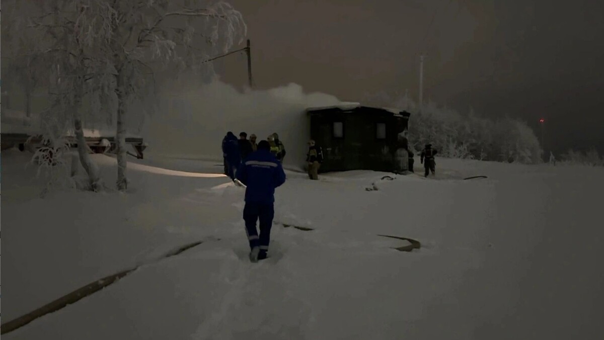 На Ангальском мысу в Салехарде загорелся балок. Видео
