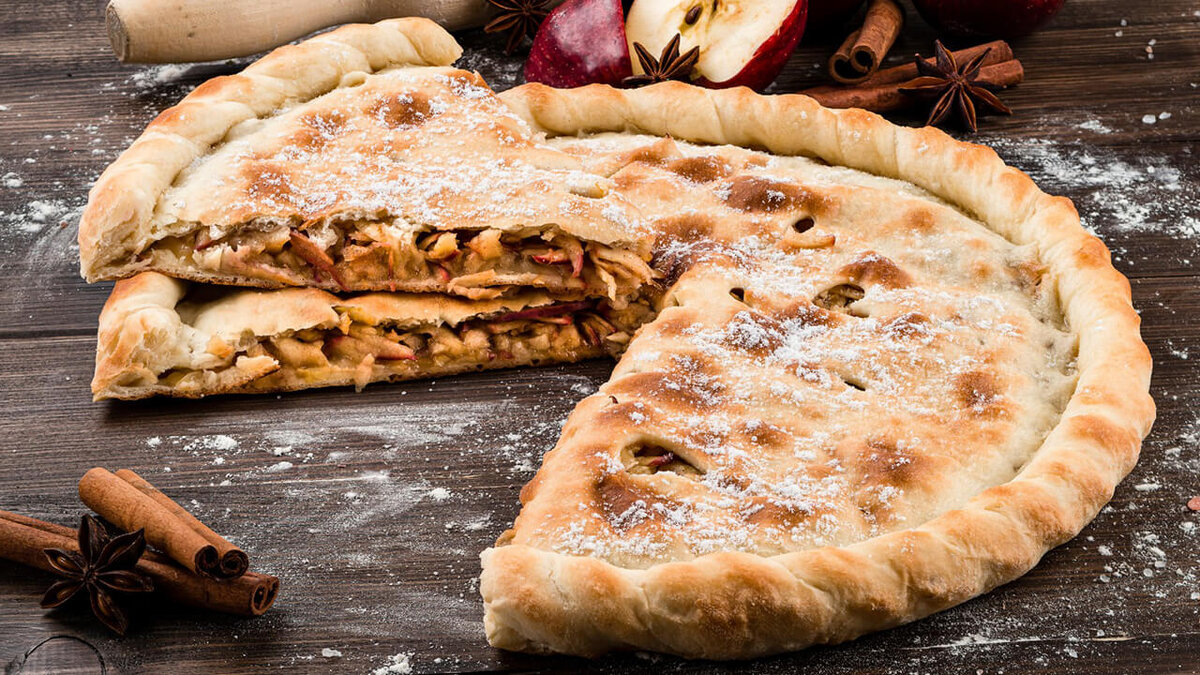 - Выпекаем постный яблочный пирог в заранее разогретой духовке при температуре 180 °C 30–40 минут.