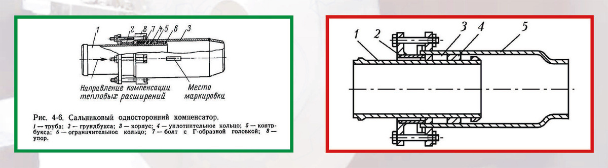 Это ключевые элементы сальникового компенсатора. Грунд-букса и контр-букса должны быть выполнены строго по заданным размерам и нормативам.