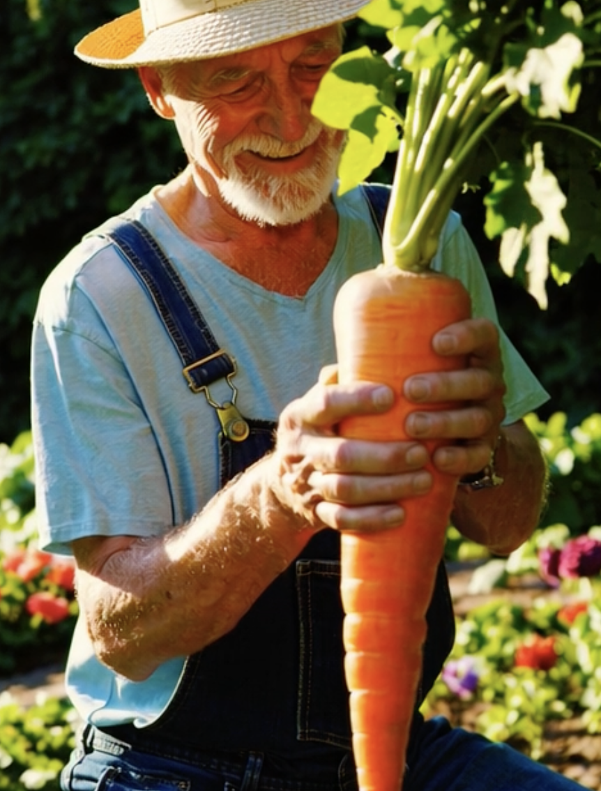 Ну что, внучки, слушайте новую историю! В этом году решил я морковкой заняться. Да не какой-нибудь, а чтоб длинной была, как моя рука, а может, и длиннее! Взял семена особые, из старого запаса, посеял, поливал, да ещё песенки пел, чтоб лучше росла. И вот прихожу я как-то на грядку, а там… торчит из земли ботва, такая зелёная, что на дерево похожа. Ну, думаю, надо попробовать выкопать. Тяну-тяну, а она всё не кончается! Еле вытащил. Лежит эта морковка на земле, а я смотрю и не верю: она длиннее моей руки! Да что там руки — почти как я сам в длину! Вся деревня сбежалась посмотреть. «Дедушка, ты что, с ней в соревнования участвовать будешь?» — смеются. А я в ответ: «Какие там соревнования? Из неё суп на целый год варить можно!» Так и вышло, внучки. Половину морковки в супы да рагу пустил, а вторую половину засолил на зиму. А кусочек оставил, чтоб семена собрать. Кто хочет попробовать такую морковку вырастить, заходите — всё расскажу, да семечек дам!