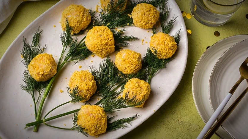 Закусочные шарики «Мимоза» — оригинальный праздничный вариант подачи всеми любимого салата
