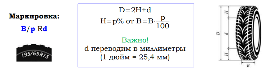 Друзья, данная статья должна была выйти намного раньше. Но так как сейчас начинаются праздники, куча проблем и работы, я попросту не успел этого сделать. Поэтому быстренько исправляюсь и разбираю последние два задания из шин ОГЭ по математике прямо сейчас. Для последних заданий вам не понадобятся какие-то особые знания. Также, как и в предыдущих заданиях, единственное, что нужно знать - это как находить радиус и диаметр колеса. На всякий случай, чтобы вы вспомнили, прикрепил картинку, на которой указано, как находить диаметр колеса. На картинке также показано, что означает каждый параметр, поэтому, сохраняйте и пользуйтесь. А вот таким образом выглядит последнее задание: На сколько процентов увеличится пробег автомобиля при одном обороте колеса, если заменить колёса, установленные на заводе, колёсами с шинами маркировки 215/45 R18? Результат округлите до десятых. Для решения у вас есть два варианта. Для обоих вариантов стоит понимать то, что в задаче вас могут спрашивать что угодно, а