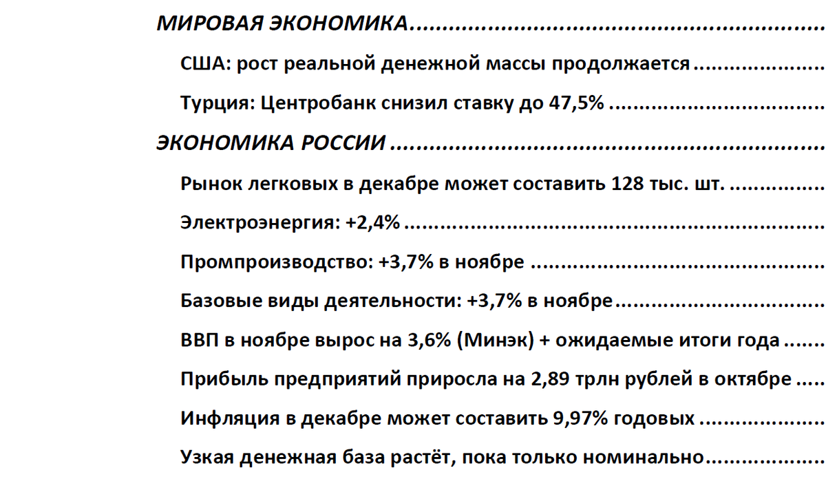 ВВП в ноябре вырос на 3,6% (Минэк) + ожидаемые итоги года