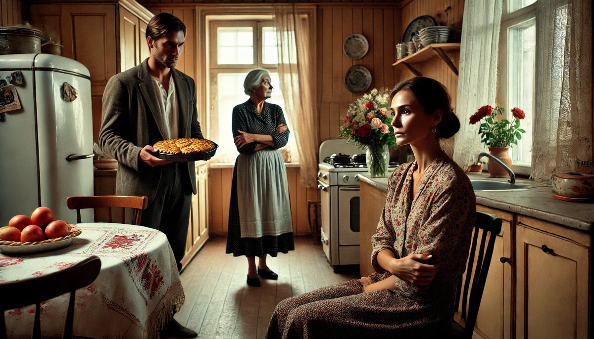 Сергей в этот момент возвращался домой и застал мать растерянно стоящей у закрытой двери с пакетом пирожков. На площадке пахло дрожжами и яблочной начинкой, а атмосфера была накалена до предела.