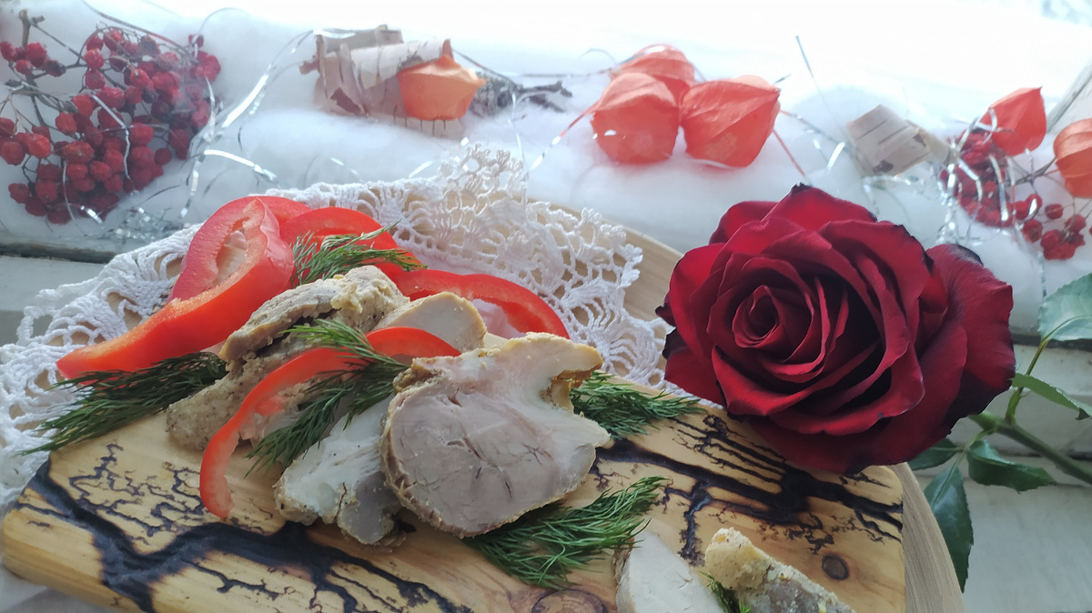 Буженина женских рук не терпит, поэтому я в процессе участвую очень отдалëнно: любимый доверяет порезать чеснок, укутать плëнкой, запеленать в фольгу и попробовать. Что кутать и когда пеленать - запомнила, расскажу подробно. Фотографии в статье из прошлого Нового года, он был сугробным и солнечным. Долистайте до финала статьи - там невероятно прекрасные, сказочные виды белоснежной Костромы. Легко! Утром кофеëк – и погнали за мясом. Прошлый год был деревянного дракона. Новый тоже деревянной, но змеи. Рептилии и пресмыкающиеся пусть останутся Востоку, а деревяшечки уважаю и люблю. Поэтому щедро украсила ими и прошлогоднее новогодье, и нынешнее. На доске, словно ударенной молнией, я буженину и фотографировала. Свинина должна быть с салом, это важно. Корейка без кости, окорок, что угодно - только с салом. Чеснок, щедрое количество, чистится, дольки нарезаются вдоль пополам или на 3 части. Мясо натирается чесноком, укладывается кастрюлю, которая укутывается пищевой плëнкой и отправ