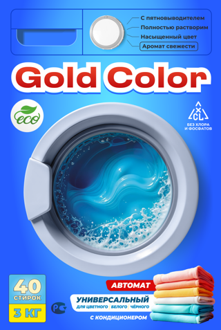 - Gold Color — это идеальное решение для тех, кто ценит универсальность, качество и заботу о своих близких. С ним ваша стирка становится проще, вещи остаются как новые, а вы экономите время и силы. Если вы ищете порошок, который действительно справляется со всем.