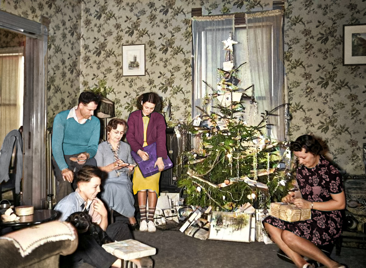Новогодние фотографии из разных стран мира прошлых десятилетий. 20 раскрашенных фотографий.