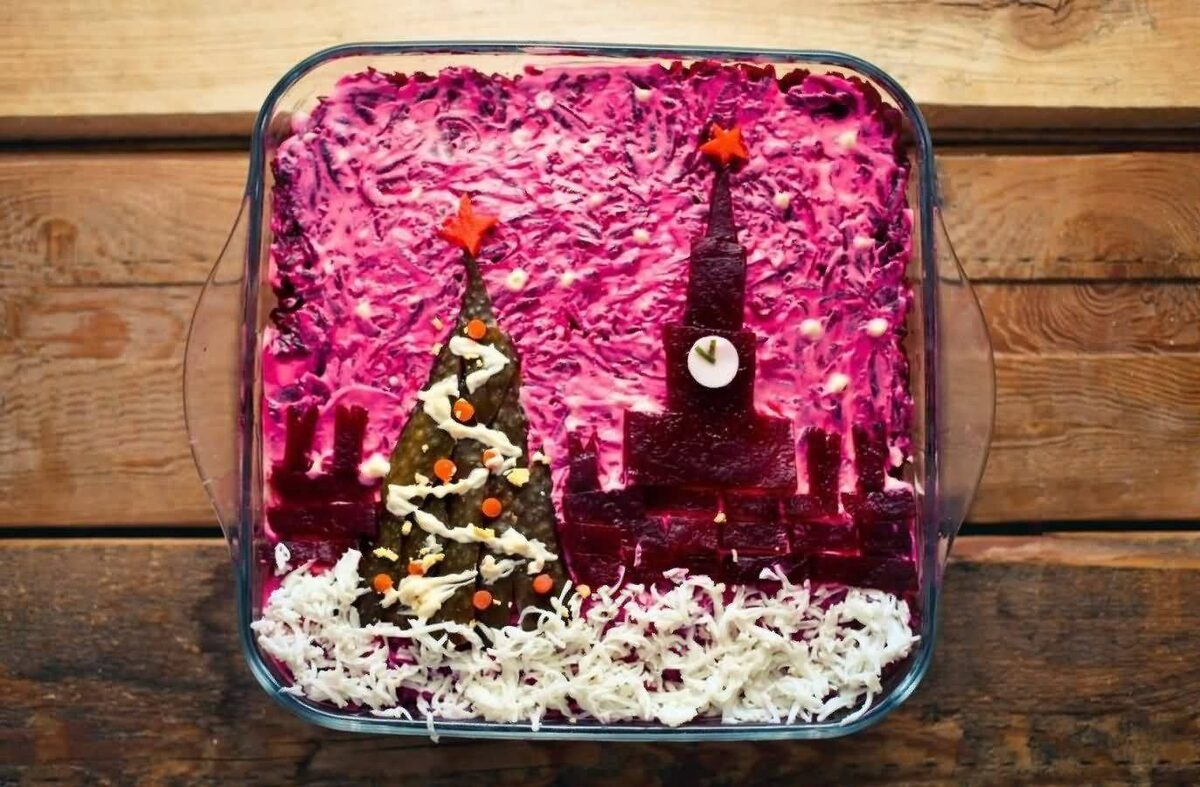 Селедка под шубой — легендарное новогоднее блюдо с политическим подтекстом. Когда-то оно появилось в переломном 1918 году, в канун нового 1919 года. Кстати, если верить народной легенде, мало кто знает, что «шуба» — это аббревиатура. Swjournal расскажет подробнее эту детективную историю. Согласно легенде, знаменитый салат родился в 1918 году. В это не очень спокойное время народ требовал исторической правды, а самые горячие споры с битьем посуды, обвинениями в контрреволюции и пением «Интернационала» на столах начинались в трактирах. Одному из московских купцов, хозяину сети популярных закусочных, Анастасу Богомилову, такая «нездоровая» атмосфера не нравилась, и он искал способ избежать гражданской войны хотя бы в его заведениях. На помощь Анастасу пришел один из его поваров — Аристарх Прокопцев, который предложил успокоить бунтарей «блюдом мира», каждый ингредиент которого был символичен. Сельдь обозначала пролетариат, так как была одним из любимейших его кушаний; картофель, морковь и