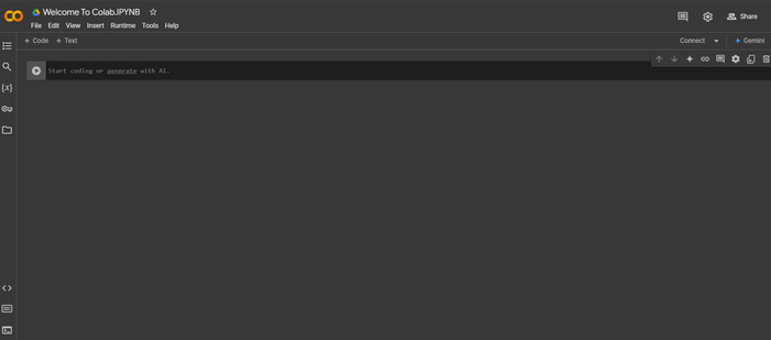 - Файловый менеджер: Слева есть панель файлового менеджера, где ты можешь просматривать файлы и папки в своей среде Colab.