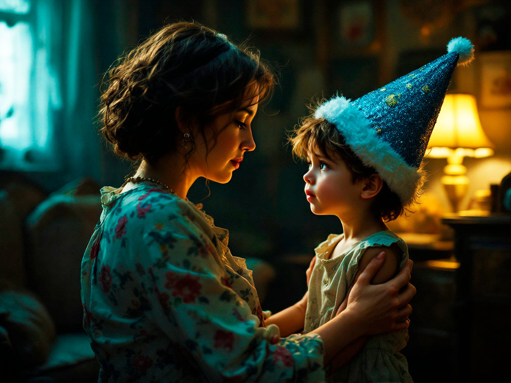 В тот вечер холод пробирал до костей. Мария, закутавшись в старый шерстяной платок, сидела у окна, наблюдая, как снежинки медленно опускаются на землю, превращая деревню в белоснежную сказку. Её взгляд блуждал по мёртвым деревьям, укрытым инеем, но мысли были далеко. В голове всплывали обрывки воспоминаний о прошлом, когда Новый год был настоящим праздником: богатый стол, весёлые разговоры, смех детей. Тогда её муж был рядом, дом казался полным света, а жизнь – более лёгкой. Но эти времена остались в прошлом. Сейчас Мария с трудом сводила концы с концами. После смерти мужа вся тяжесть жизни легла на её плечи. В деревне работы не было, пенсии матери едва хватало на хлеб, а двое детей – пятилетний Ванечка и семилетняя Анечка – всё больше задавали вопросы, на которые она не знала, как отвечать. – Мама, а мы будем кушать на Новый год? – вдруг раздался голос Ванечки. Он стоял на пороге комнаты, сжимая в руках единственную игрушку – старого плюшевого мишку с оторванным ухом. Его глаза светил