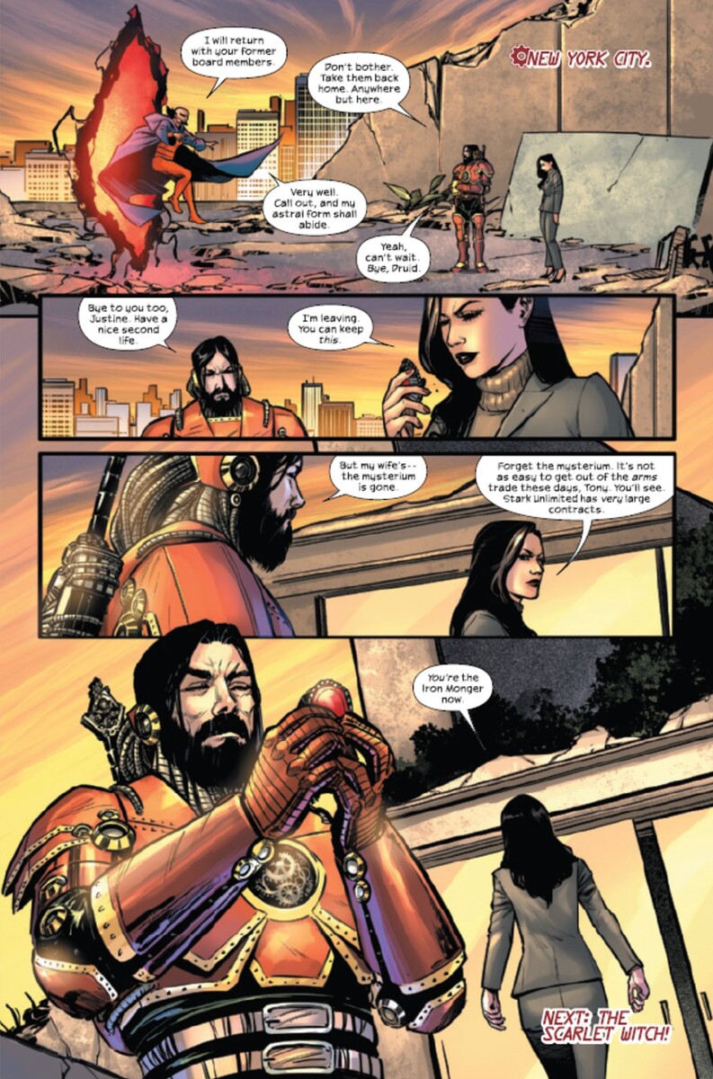 Основные события комикса развиваются на фоне напряжённой борьбы между Тони и Джастин Хаммер, которая достигает своего пика в жес