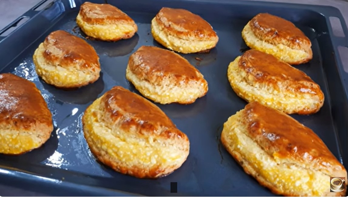 Все всегда в восторге от такой выпечки к чаю простых и доступных продуктов, которые есть в любом доме. Для начала надо приготовить мягкое тесто миксером взбить масло с сахаром добавить одно яйцо, сметану, соль и разрыхлитель и в конце добавить всю муку сначала миксером взбить до крошки , затем руками собрать всё тесто в комок долго не замешивать и ставим в холодильник на 1 час. За 5 минут как достать тесто из холодильника надо приготовить творожную начинку как показано на видео рецепте. Тесто перенести на стол, разделить на 9 частей, каждый шарик раскатать в круглый пласт диаметром 10 см, на одну половину выкладываем начинку, накрываем второй половиной теста и полученные заготовки перенести на противень смазанный растительным маслом и сверху все заготовки смазать желтком. Ставим в духовку при температуре 200 градусов на 15 минут, затем 180 градусов и ещё 10 - 15 минут. и потрясающая нежнейшая выпечка к чаю готова. Приятного чаепития.