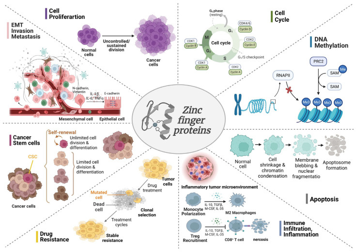Тем не менее, не было достигнуто консенсуса относительно оптимальных биомаркеров и методов, несмотря на большую работу, направленную на создание лучших инструментов для прогнозирования при РЖ [182,183]. Вышеупомянутые открытия суммировали многочисленные ZFP, регулирующие пролиферацию, метастазирование, лекарственную устойчивость, метилирование ДНК и апоптоз в клетках РЖ. Установлено, что несколько ZFP, такие как ZNF460, ZNF521, Snail, RNF114, ZEB1, ZNF139, ZFP64, GLIS2, GLI1, ZNF545, ZNF471, RNF180, ZIC1, zFOC1, ZBP89 и RNF43