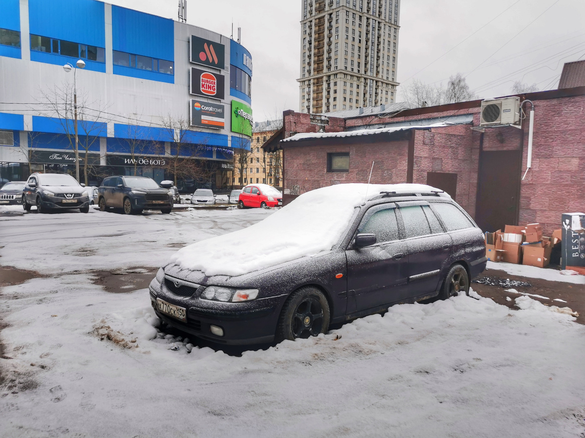 1. По пути в поликлинику меня привлёк автосугроб: вот я его и сфотографировал. Внутри сугроба прячется автомобиль Mazda 626. Улица Маршала Бирюзова.
