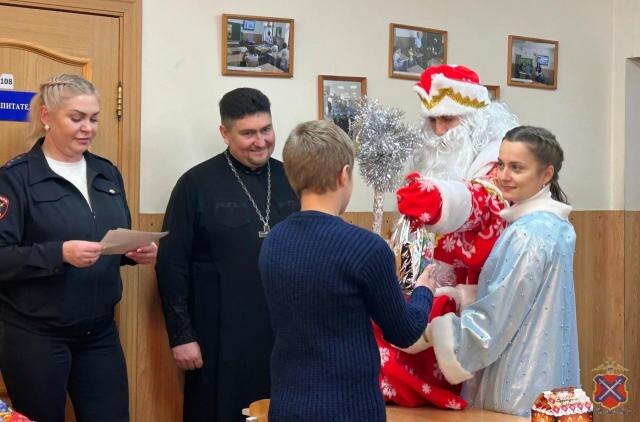 В Волгограде в рамках Всероссийской акции «Полицейский Дед Мороз» поздравления получили воспитанники Центра временного содержания для несовершеннолетних правонарушителей. Также ребятам вручили сладкие подарки. Как сообщили РИАЦ в ГУ МВД России по области, к детям пришли Дед Мороз со Снегурочкой, а также представитель Общественного совета при УМВД России по городу-герою отец Евгений Катаев. Ребята, остающиеся в центре на Новый год, получили тематические памятки и подарки, подготовленные общественником. Несовершеннолетним пожелали крепкого здоровья. Добра и мира. Кроме того, им напомнили о правилах безопасного поведения на дороге.
