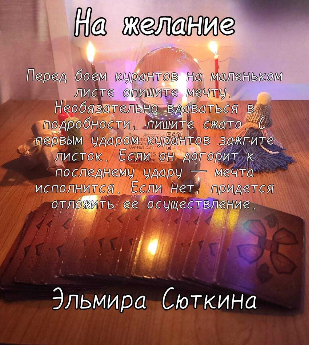 Каждый хоть раз загадывал желание. Одни предпочитают это делать пока падает звезда или бьют куранты, другие — во время празднования китайского Нового года. Есть много способов осуществить мечту. Эти методы помогут определить, исполнится она или нет. Гадания под Новый год помогут узнать о том, что ждет на протяжении следующих 12 месяцев. Не стоит относиться к таким пророчествам очень серьезно. Ведь всё в жизни зависит от нас и в любой момент будущее может измениться. Пишите, разберем все вопросы на Таро или в Астропрогнозе 🔮 Эльмира Сюткина 🪬