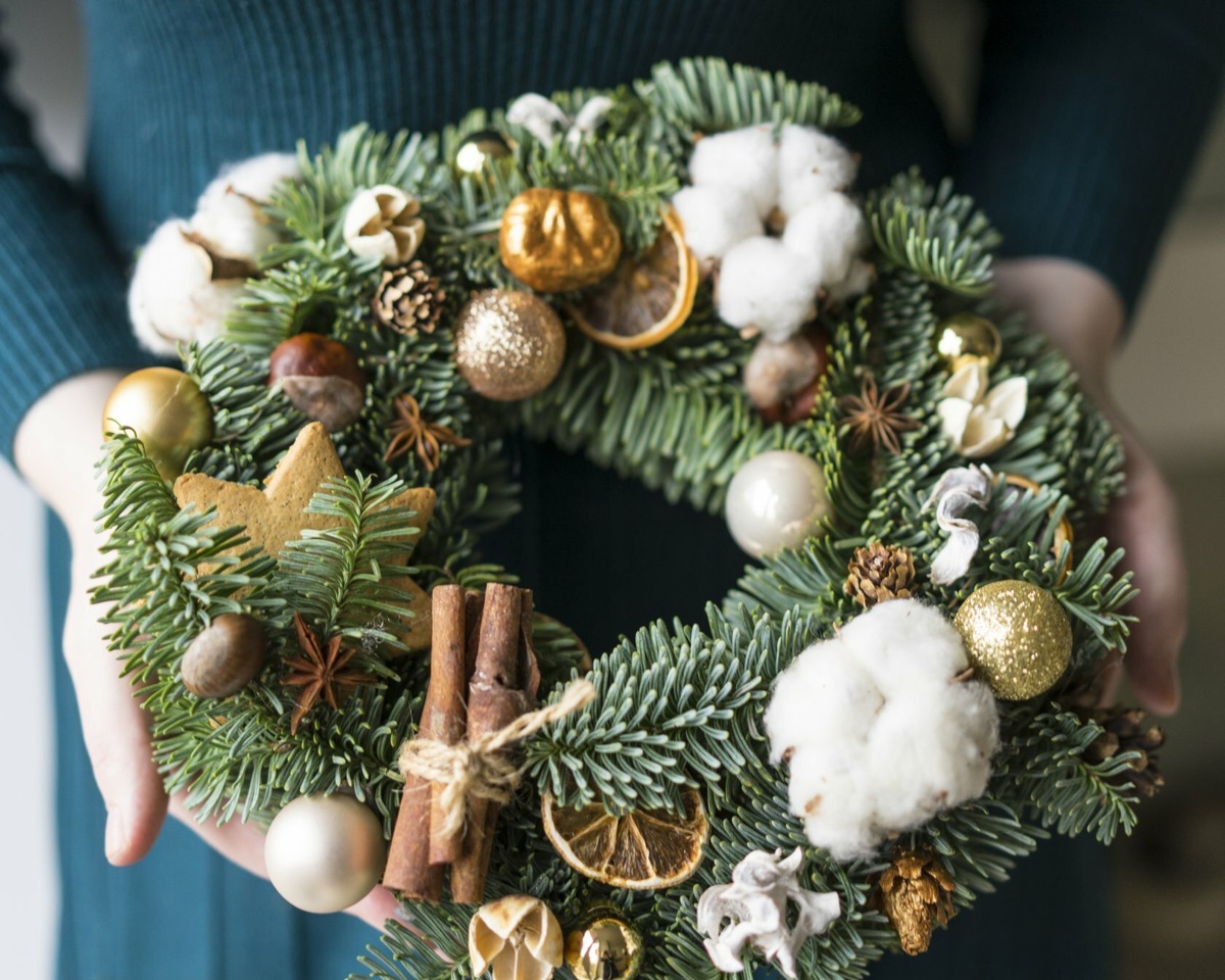 Готовясь к Новому Году, хочется украсить не только елку, но и весь дом. И одним из вариантов атмосферных и экологичных украшений является лапник. Это отдельные веточки, срезанные с деревьев. Преимущество лапника пихты Нобилис в том, что он не осыпается даже после полного высыхания, поэтому его можно смело использовать в разных композициях без доступа к воде. Рождественский венок Первая и самая очевидная идея использования лапника - это рождественский венок. Веточки крепятся к круглому основанию, украшаются игрушками, гирляндами и лентами. Такой венок традиционно размещают на входной двери, над камином или на стене в главной комнате дома, где и планируется новогоднее торжество. Украшение на стол Менее очевидная, но привлекательная идея - новогодняя композиция на стол. Чтобы ее сделать, вам понадобится основание в виде корзины, тарелки или любой другой емкости и флористическая губка. Установив губку в основание, в нее вставляются веточки лапника, ветки и цветы других растений. Все это ук