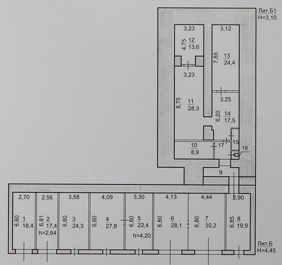 Вид о обратную сторону. Возвращаемся к коридору с поворачиваем в дальнюю часть объекта (помещения № 11 и 12).