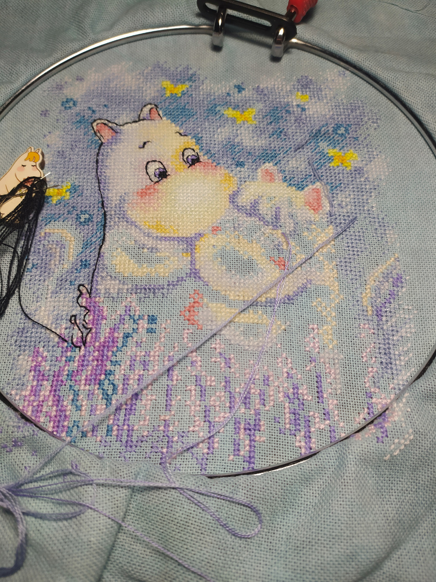 А вместо подготовки к празднованию Нового года я - сижу и вышиваю. А всё потому что сегодня моя рабочая смена до 8 утра. Вот так - ушла в одном году - вернулась в следующем😀 Пока осилила только 500х . Остановилась на ушках девочки, которые так нравились Муми-троллю)