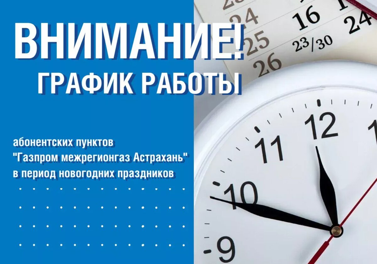 Каникулы – возможность не только отдохнуть, но и сделать дела, на которые в повседневной рабочей суете не хватает времени. Например, сходить в офис ресурсоснабжающей организации. Газпром межрегионгаз Астрахань сообщает, как будут работать офисы обслуживания клиентов в период новогодних праздников. Центральный абонентский пункт (г. Астрахань, пл. Шаумяна, 2а): 03.01.2025 с 09.00 до 18.00 04.01.2025 с 09.00 до 18.00 06.01.2025 с 09.00 до 18.00 Прием платежей осуществляется по следующим адресам: 03.01.25 - 04.01.2025 – ул. Адмирала Нахимова, 109 06.01.2025 – ул. Звездная, 11/11 Оплата будет производиться только по безналичному расчету! Абонентский пункт № 2 (г. Астрахань, пер. Пеший, 19б) 03.01.2025 - с 09.00 до 18.00 06.01.2025 - с 09.00 до 18.00 08.01.2025 - с 09.00 до 18.00 Прием платежей осуществляться не будет! Абонентский пункт № 3 (с. Началово, ул. Астраханская 19а) 03.01.2025 - с 09.00 до 18.00 04.01.20.25 - с 09.00 до 18.00 Прием платежей будет осуществляться 03.01.2025 - с 09.00