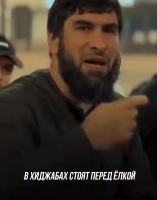 «Ёлька — это харам, мусулман такое не празднует. Что сегодня происходит? В хиджабах стоят перед ёлкой. Нет у нас твёрдых убеждений. Мы просто называемся мусульманами: намаз пошли сделали, ни знаний, ни ильму, ни Корана у нас нет.»