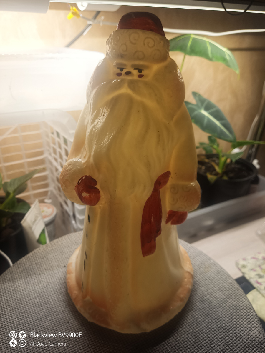 В моей семье почему-то не было Деда Мороза. Не знаю, почему. Но мне всегда хотелось! И вот он у меня появился из семьи мужа. Этот дедушка старше меня. Посмотрите на его колпачок. Знаете, что с ним случилось?