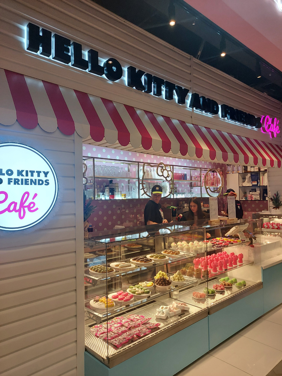 Если пойдёте гулять по центру Москвы с детьми, особенно с девочками и проголодаетесь, то в Центральном детском магазине на шестом этаже находится классное кафе Helllo Kitty and Friends. Была там уже три раза. Оно красиво и стильно офомлено. Удобные кресла украшены розовыми бантиками. Эти кресла выглядят мега-уютно, но мы каждый раз выбирали места у окна, чтобы насладиться видами Москвы с необычного ракурса. На потолках висят люстры в виде тортиков. Всё очень милое и розовое. Есть зеркало для селфи в виде мордочки Китти. Официанты вежливые и предупредительные. Можно отпраздновать день рождения, есть столик на десять человек. Еда тоже стилизованная под Китти. Например, карбонара Pink розового цвета. Всё вкусно. Мне понравился зелёный итальянский суп с говядиной и лавандовый хлеб. Бургер с логотипом Helllo Kitty тоже был очень вкусный. К бургеру подали перчатки розового цвета. Только что побывала в кафе АндерСон, тоже там заказывали бургер. Так вот: в Helllo Kitty бургер был гораз