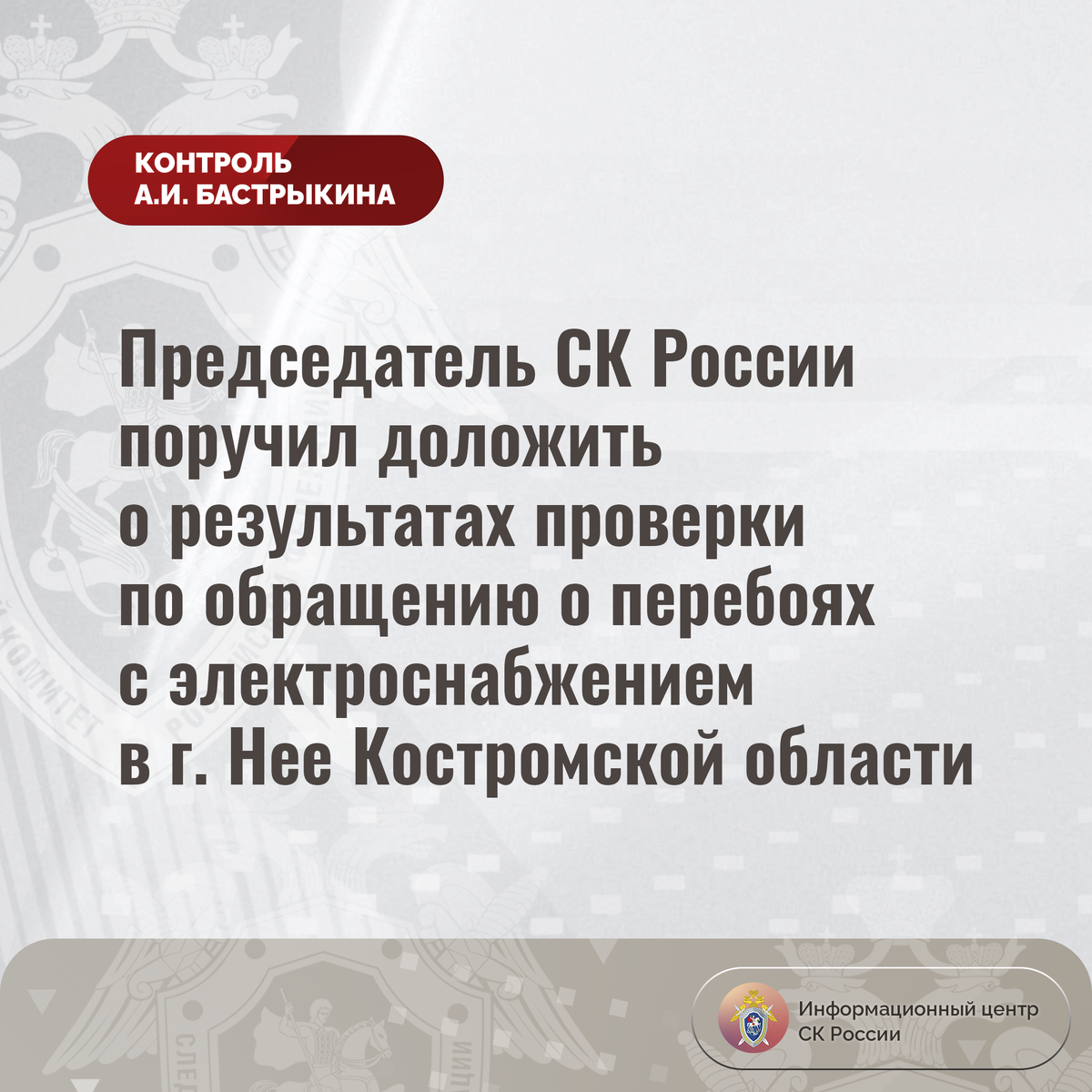 Председатель СК России поручил доложить о результатах проверки по обращению о перебоях с электроснабжением в г. Нее Костромской области