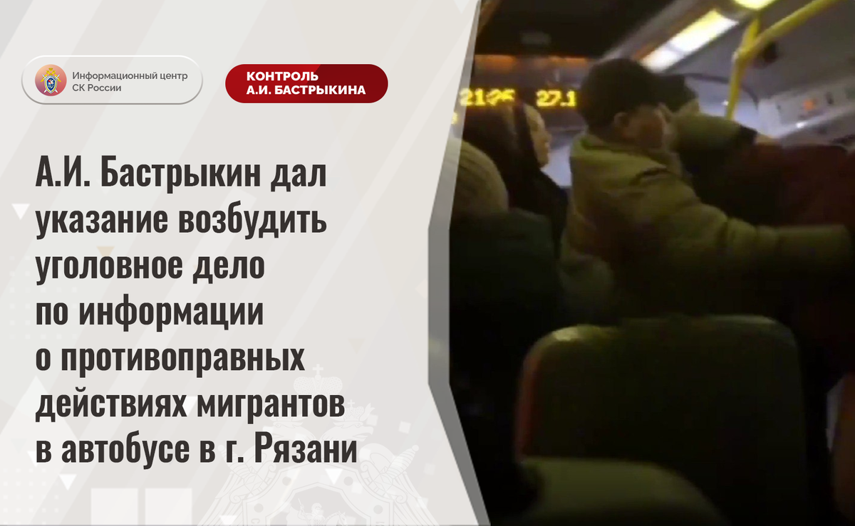 А.И. Бастрыкин дал указание возбудить уголовное дело по информации о противоправных действиях мигрантов в автобусе в г. Рязани